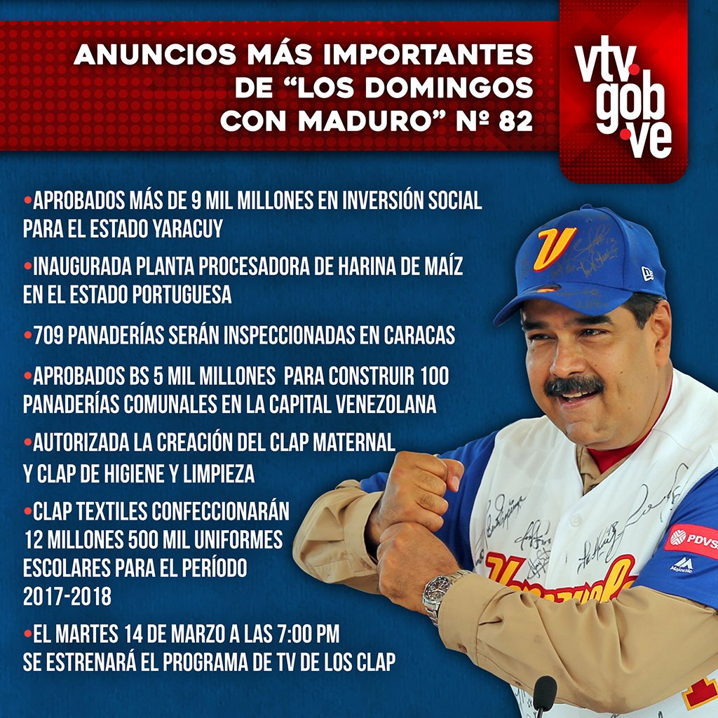 Anuncio presidencial Clap de higiene y limpieza Clap maternal Inspección de panaderías Noticias Panaderías comunales Programa de tv de los clap Programa los domingos con maduro Conoce en esta infografía los anuncios del programa #LosDomingosConMaduro82 marzo 12, 2017 0 Fuente: @VTVcanal8 Entradas que pueden interesarte Entradas más recientes Entradas antiguas Sin comentarios